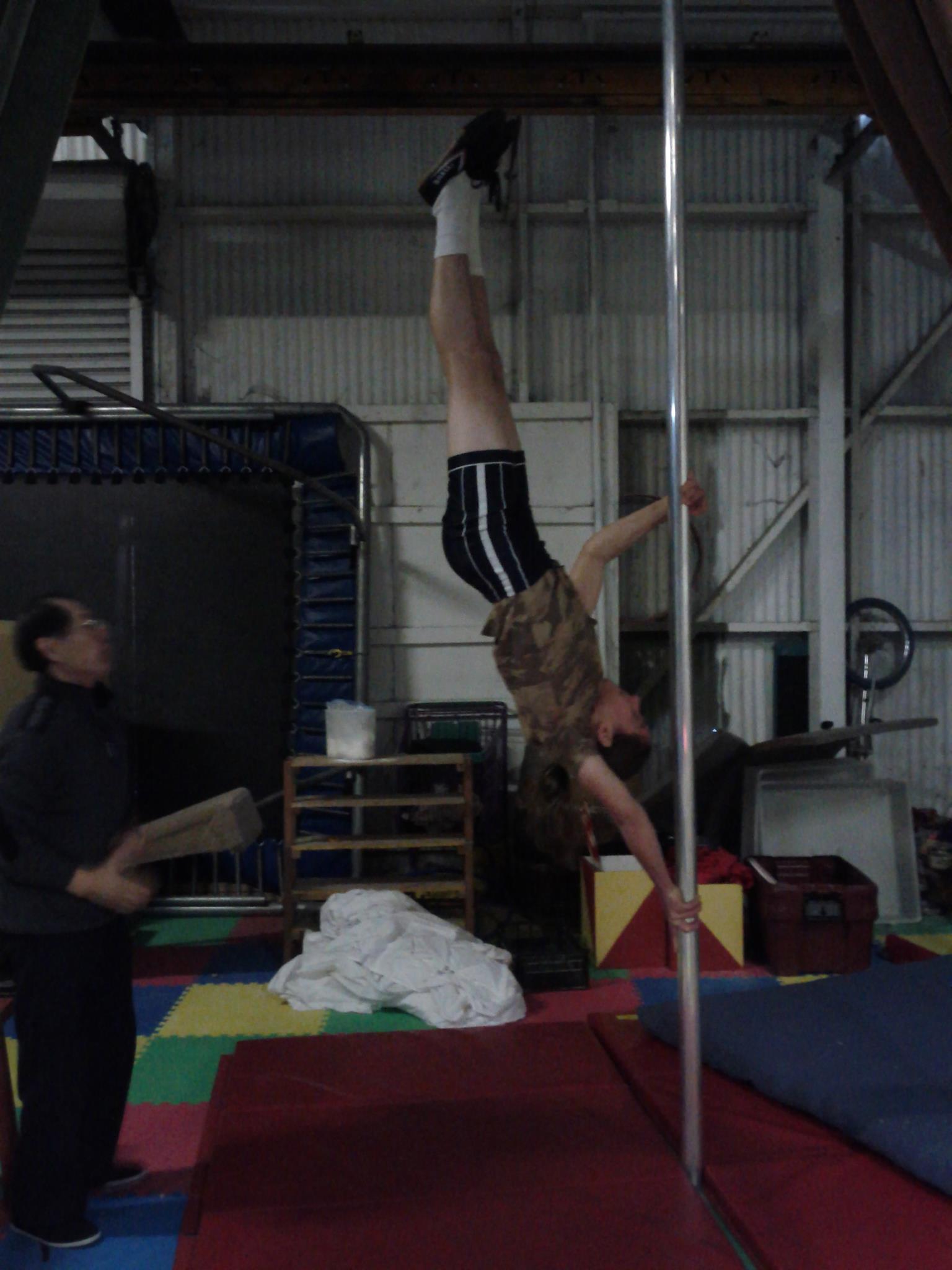 That one was actually from circus arts, not gymnastics. I was taught by Lu Yi, a wonderful old man who was in the Chinese circus for A Very Long Timeā¢.